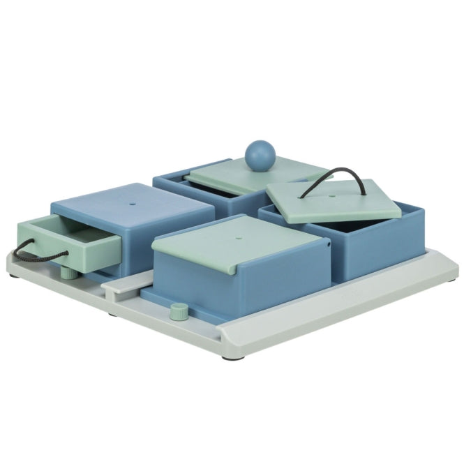 The Poker Box 1 is a challenging game suitable for dogs of all ages. The non-slip rubber feet ensure stability. The Poker Box 1 is dishwasher safe. A training booklet with many tips and tricks is included to help you make training fun and effective for your dog.
