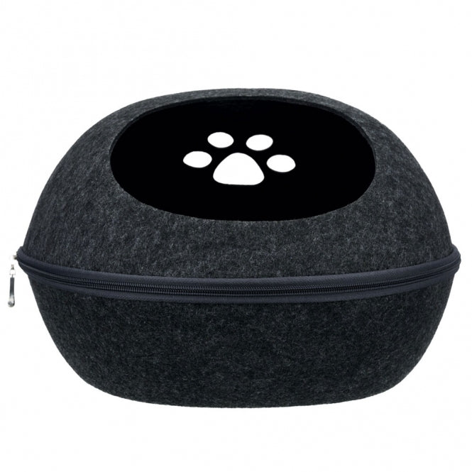The Liva cozy cave is made of dimensionally stable felt (polyester), which is insulating and dirt-repellent.