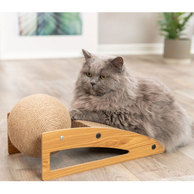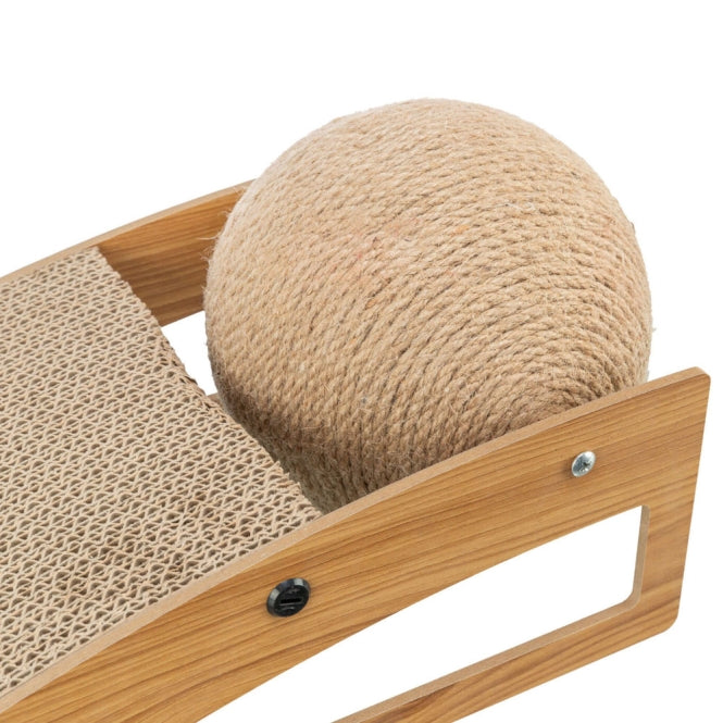 Offer your cat fantastic play and scratching fun with the TRIXIE scratching ramp. This scratching board combines a durable jute surface with an integrated ball game that can keep your cat entertained for hours. The sturdy jute ball encourages play, while the cardboard and MDF scratching surface helps maintain your cat's claws and allows them to satisfy their natural scratching instinct. Perfect for daily entertainment and claw care.