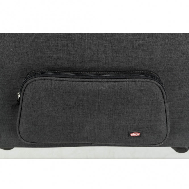 The carrier bag opens from the front and top with zippers, providing easy access to your pet and making it simple to place them inside. A convenient additional compartment on one side of the trolley is ideal for storing items such as a water bottle, treats, toys, etc. Mesh panels at the front, back, and top ensure good air circulation inside the trolley, and a removable base with a cozy, lambskin-look cover provides comfort. The base cover is removable via a zipper and can be hand-washed at 30°C. The nylon material used for the rest of the trolley can be easily wiped clean. The entire trolley can be easily folded to save space and comes with a practical storage bag in which everything can be stored when not in use.